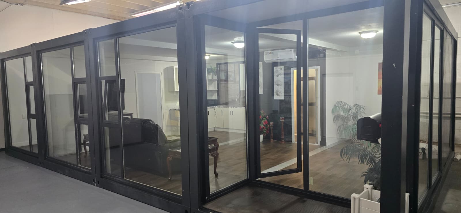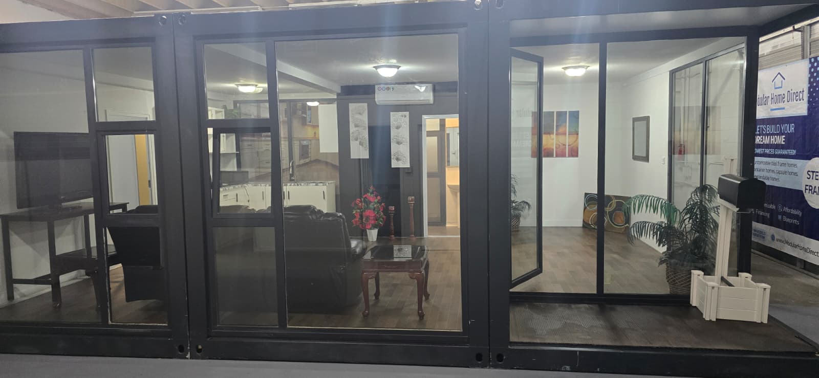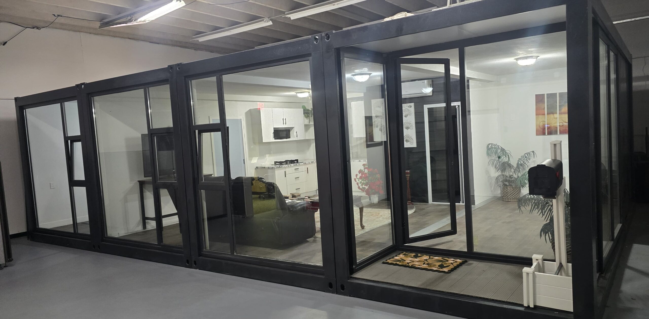 Skip the long build timeline. This is a ready-to-relocate, modern modular home built from four connected steel modules (approx. 160 sq ft each; ~640 sq ft total) with a dramatic full glass façade. The interior is finished in a compact, functional 1 bedroom / 2 bathroom layout—ideal for a guest house, ADU use (where permitted), studio, or modern retreat.